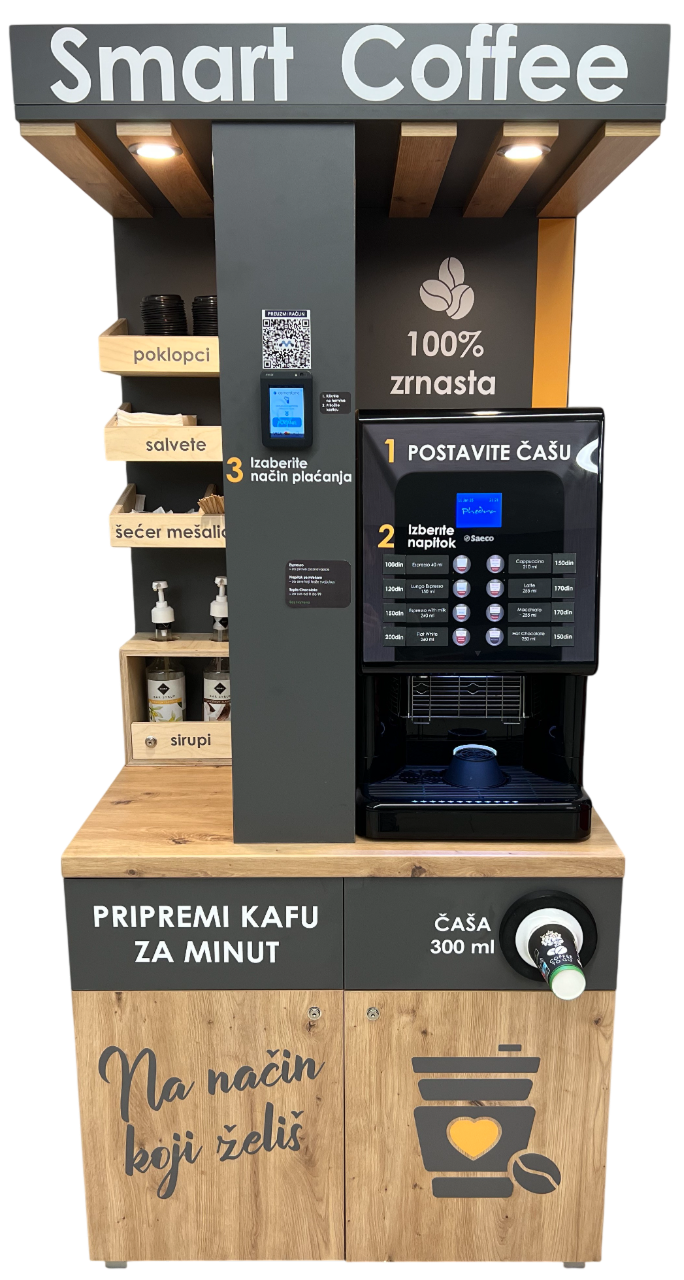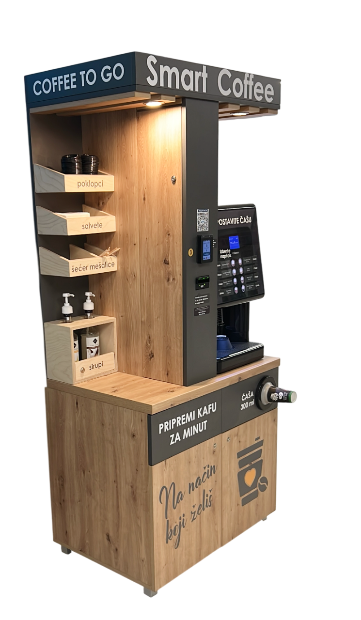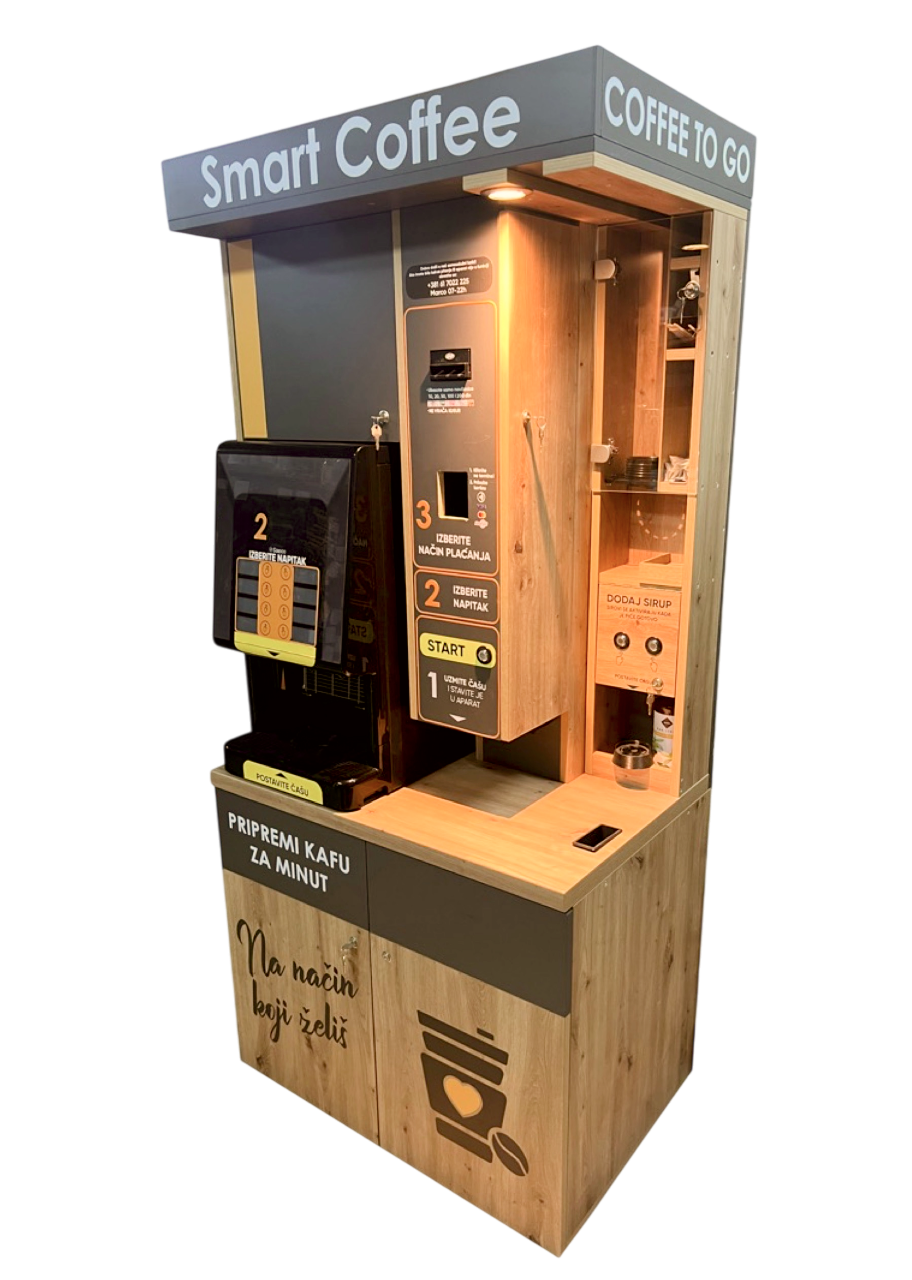 Smart Coffee je privatna kompanija koja razvija sopstvenu mrežu coffee point-ova u Srbiji. Takođe se bavimo proizvodnjom, instalacijom i održavanjem coffee point-ova samo-usluge. Mi smo dobavljači opreme i potrošnog materijala za vođenje vending kafenskog poslovanja.